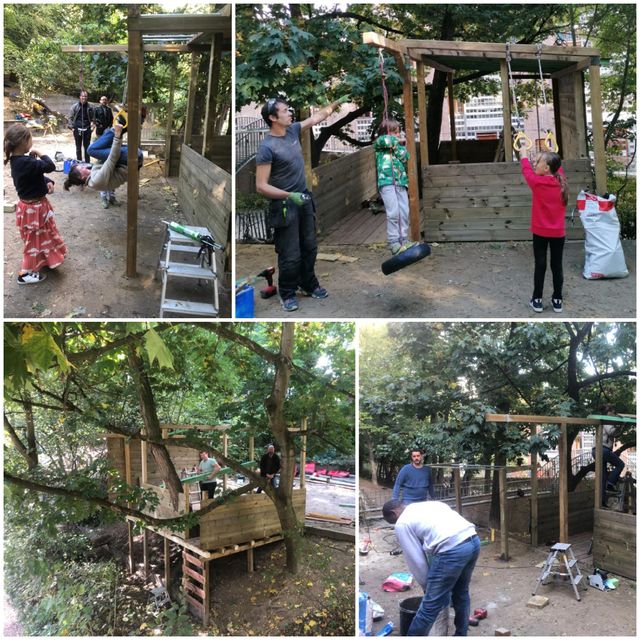 Si vous n’avez pas encore eu la chance de vous balader dans le terrain ou de l’apercevoir à partir de la promenade verte, voici quelques clichés de la Cabane.De sa construction à son exploitation. Pour certains enfants, il s’agit de l’aboutissement d’un projet débuté il y a 4 ans déjà. |